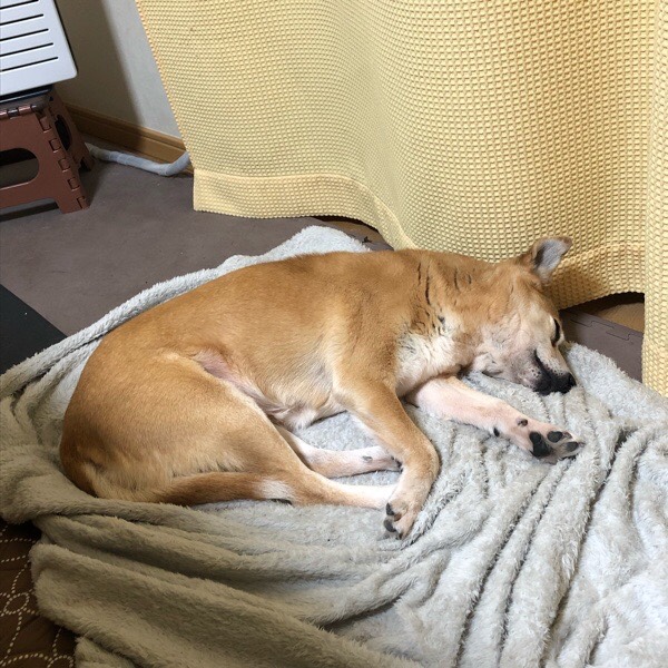 グッチおじーワンは、瞬ぴぃの お隣で まだまだ爆睡中💤