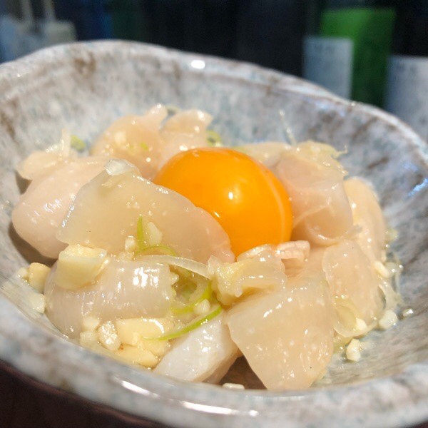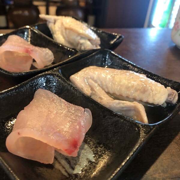 お通しは、煮手羽とヒラマサの生ハム仕立て。