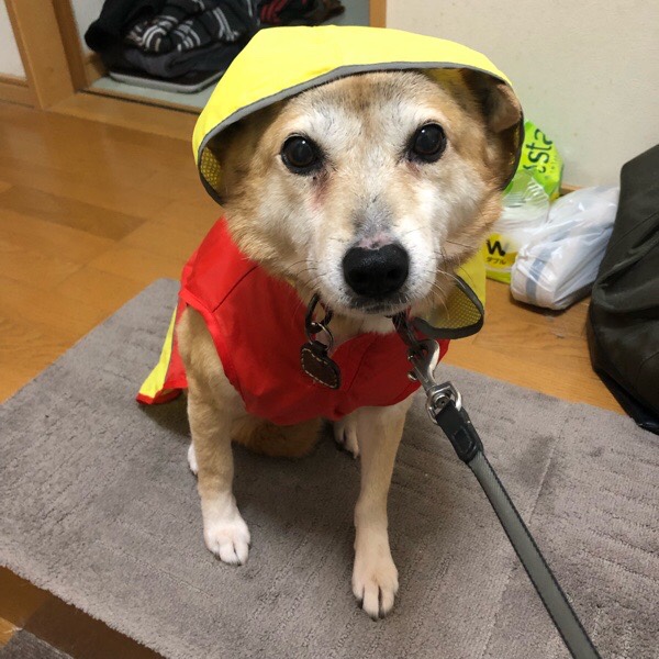 雨の散歩は、レインコート😅