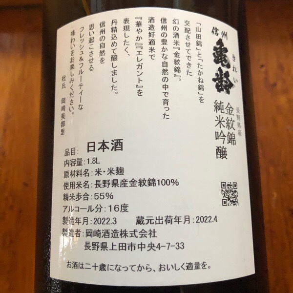 信州亀齢は、前回の限定品から 今回も 蔵元さんと一軒の酒屋さんのみ販売の限定品、金紋錦に変わりました⤴️