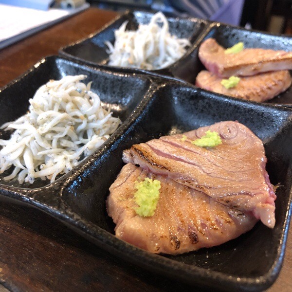 ゴールデンウィーク中の最終営業日も御予約様で満席扱いとなりまして、気合い入れました お通しは、釜揚げしらすとインドマグロ中トロ塩炙り。