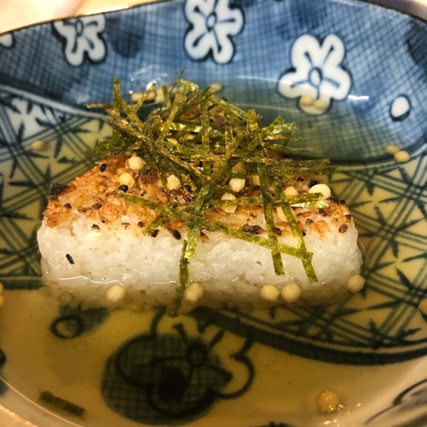 〆タイムは、炭火焼きおにぎり茶漬け。