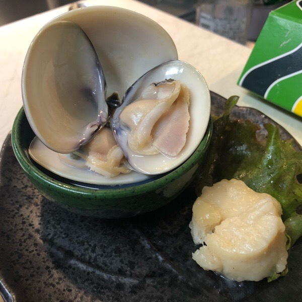 蛤の酒蒸しと帆立バターが お通し。