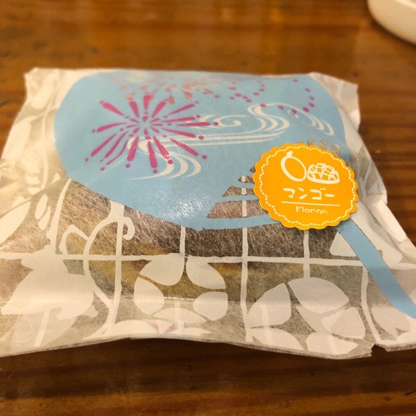 木村メガネさん、登場で 大島まんじゅう屋さんのマンゴーどら焼きの お土産。