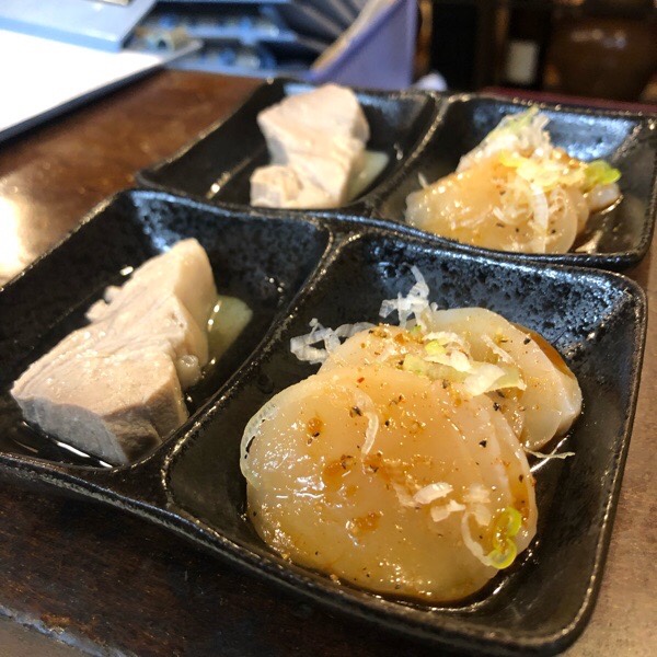 別の御予約様も御来店となりまして、鮪の角煮と帆立のユッケが お通し。