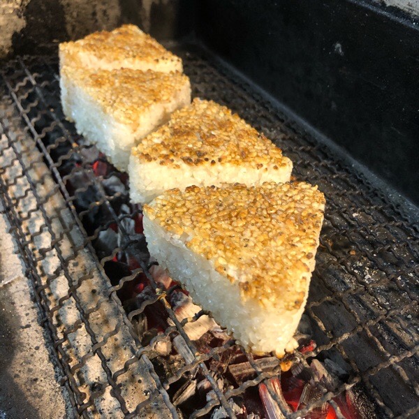 〆タイムは、こちらも炭火焼きの 焼きおにぎり。
