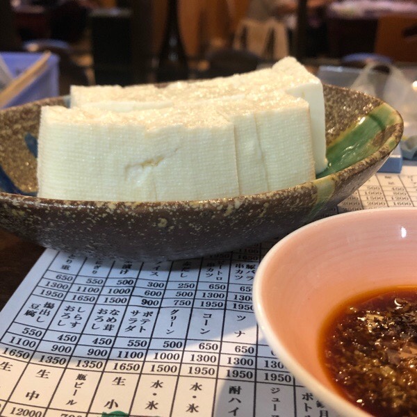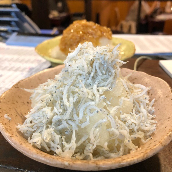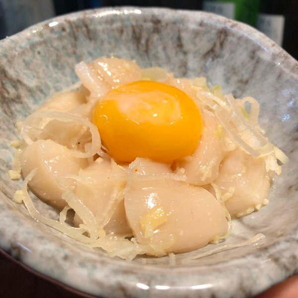 お通しは、茹で上げ枝豆とカンパチのユッケ。