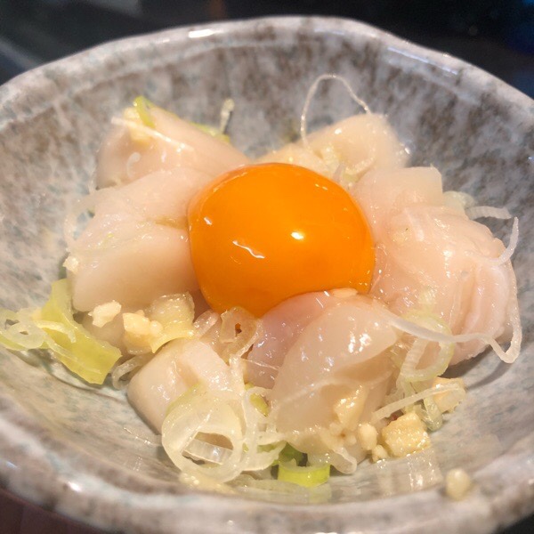人気者となりました、帆立の塩ユッケ。