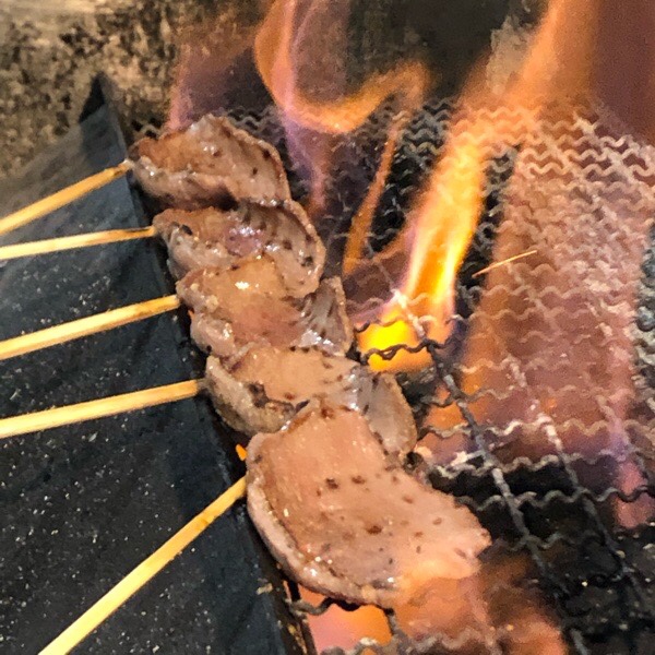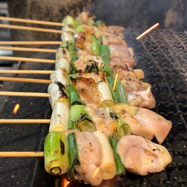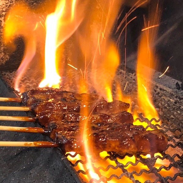 お写真、主役の炭火焼きとり&特製 豚の大トロもつ煮。