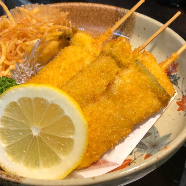 豚バラの串カツ。