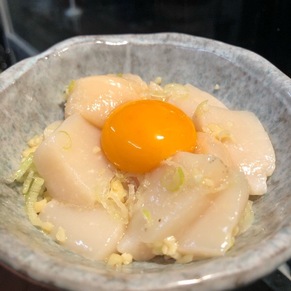 帆立の塩ユッケ。