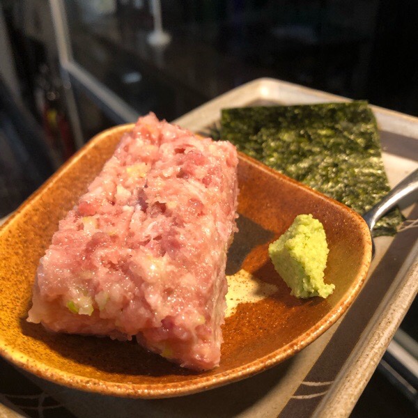 こだわり豆乳のヤッコと真子鰈のユッケが お通し。