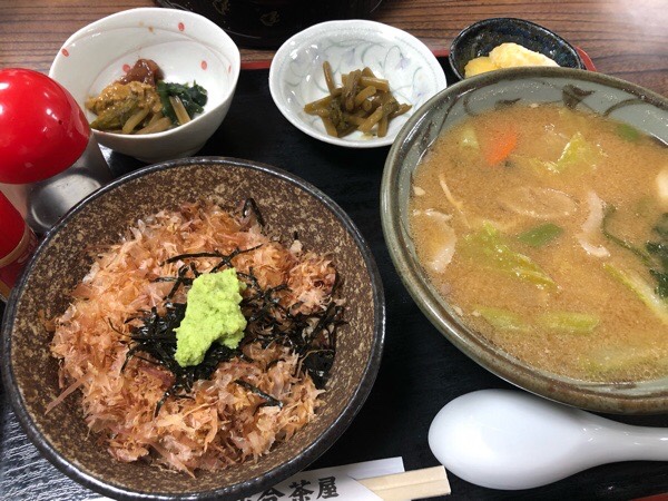 浄蓮の滝の お食事処で わさび丼を食べておけば良かったんですが、欲が出まして 有名な かどやさんへ行くも、本日分の店内の予約は終了😫