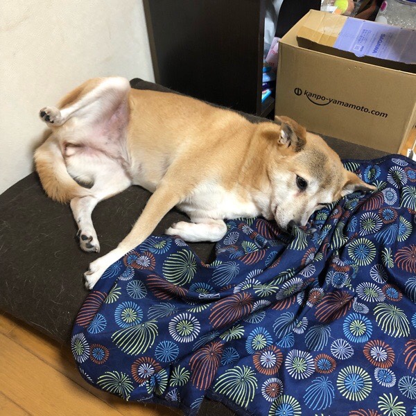 お仕事終わって 帰宅しますと、リラックスしながら ヒバ子さんに お帰りされました🤣