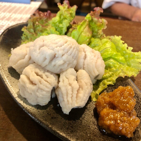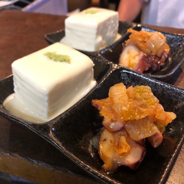 お通しは、こだわり豆乳ヤッコとタコキムチ。