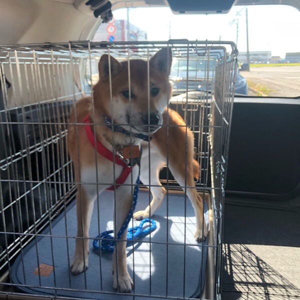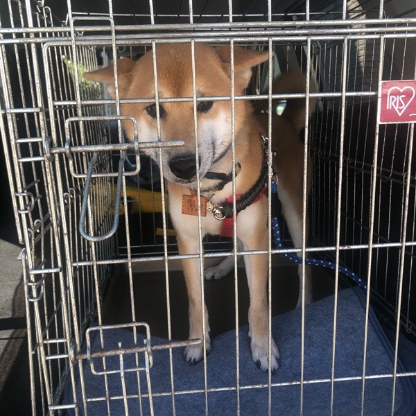 センター内でシッコを済ませましてから、ケージに入ってもらいました。