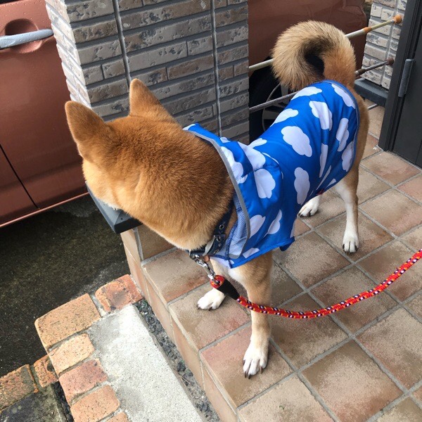 気合いは空回りな感じとなひまして、雨の日の お散歩という事で、レインコート🤗