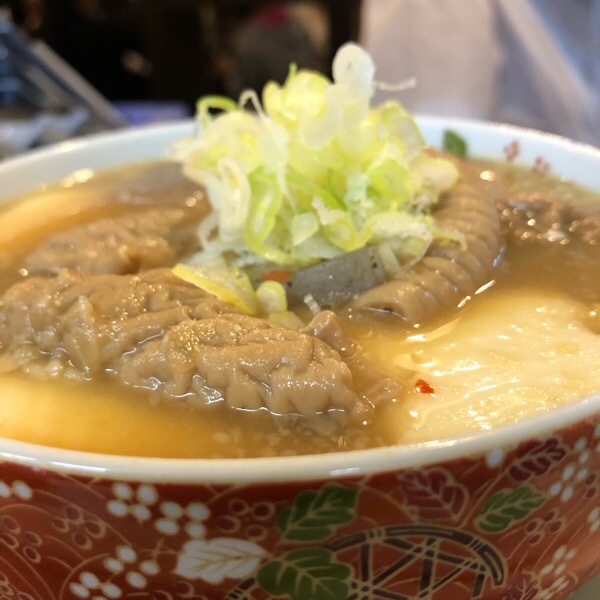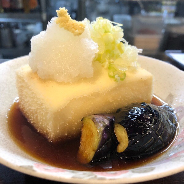 お通しは、豚の大トロもつ煮と鯵のタタキ。