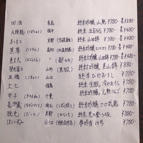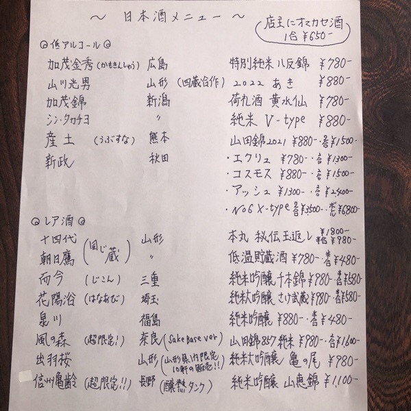 本日からの日本酒メニューは、こんな感じとなります🍶