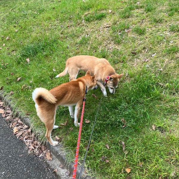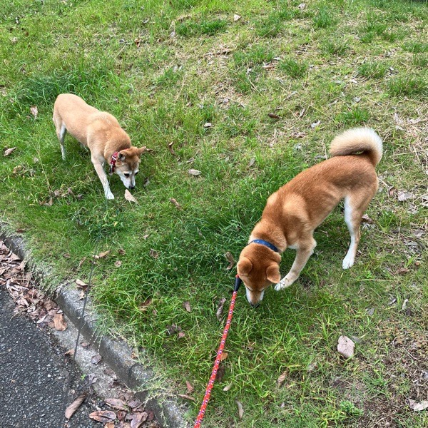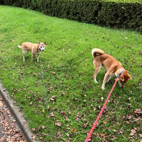 先にトイレを済ませてしまったヒバ子さんは、クネクネ歩くリリ君の後ろを追いかける形での お散歩😅