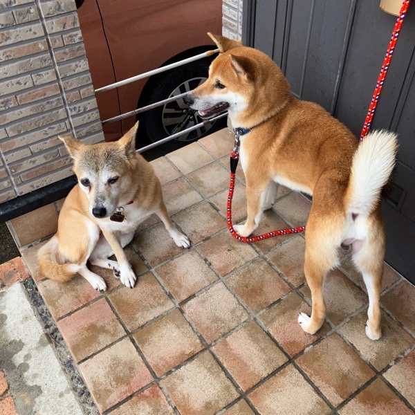 二人とも 首輪に迷子札を付けての お散歩です♪