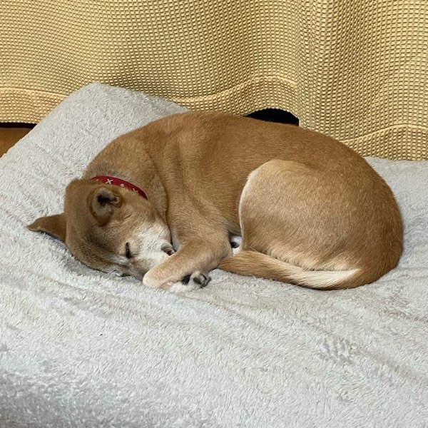 甘えん坊さんは、夜も飼い主のアンヨを枕にしまして、寝ておりました😆