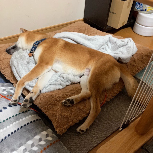 ヒバ子さんは、自分の毛布を少しグシャッとしまして 朝の お昼寝タイム突入となりました💤