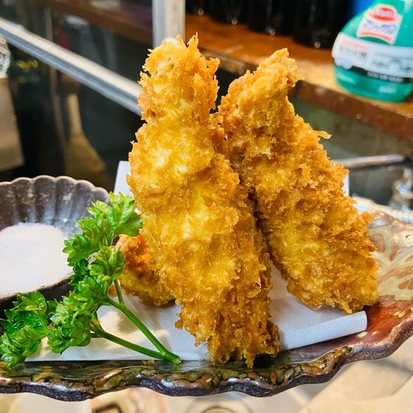 贅沢に 同じ牡蠣を使用しましての お塩で食べるカキフライ。