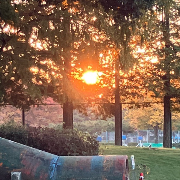 お散歩へ出まして、朝陽がピッカンコ☀️