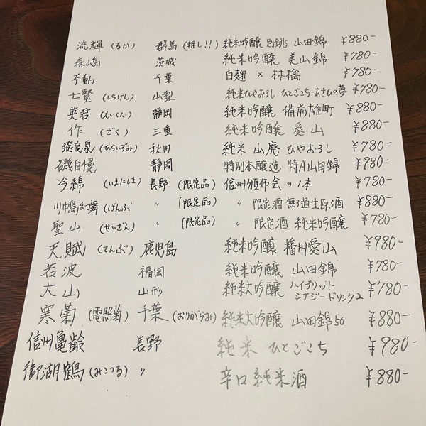 お店の準備へ入りまして、日本酒メニューも書き直し_φ(・_・