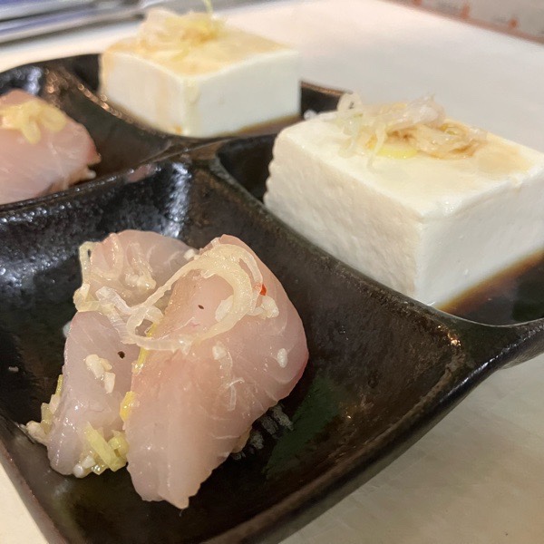 夕方5時となりまして、今週も開店!鰆の塩ユッケと こだわり豆腐の湯豆腐が お通し。