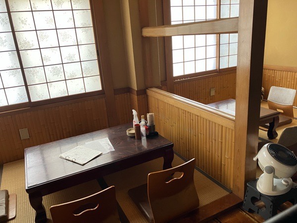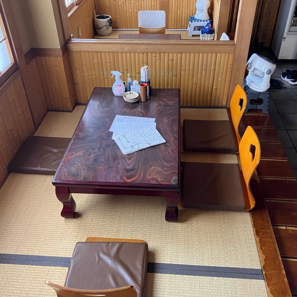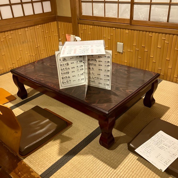 7名様の御予約でございましたので、小上がり席を2つ使いまして、4名様と3名様。