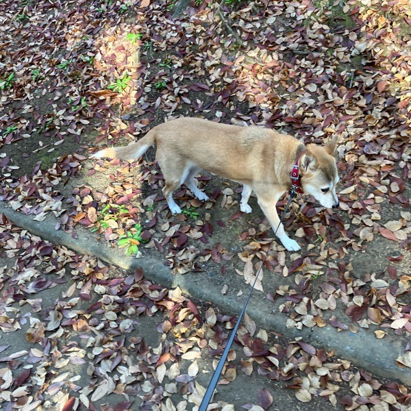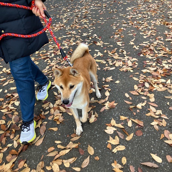 リリは奥様、ヒバは瞬ぴぃのリードで 朝の お散歩🐕