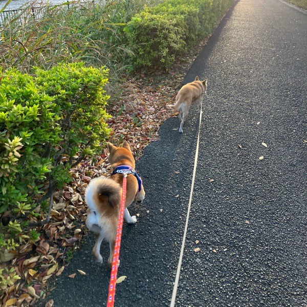 リリが突っ込んでくるのでは⁈と少々ビビりながらの お散歩ですが、基本的には仲良く一緒に歩けてます🐕