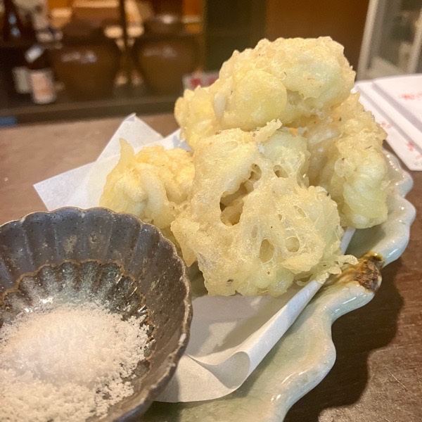 ほうれん草のシーザーサラダとガーリックタコが お通し。