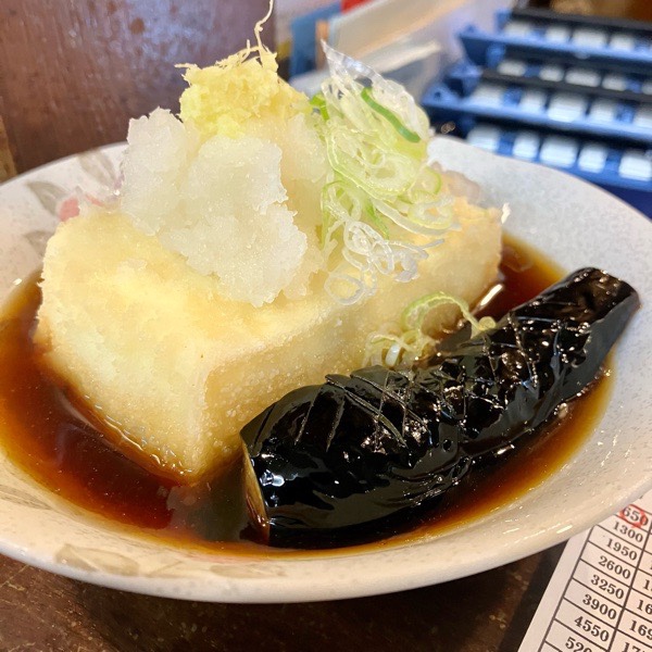 お通しは、大人のペビースター⁈エノキの唐揚げと汐子の塩ユッケ。