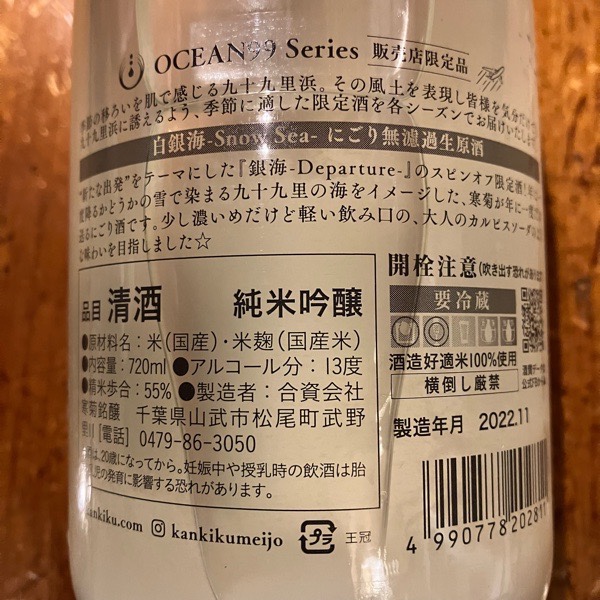 千葉県 寒菊 純米吟醸 白銀海 にごり無濾過生原酒。