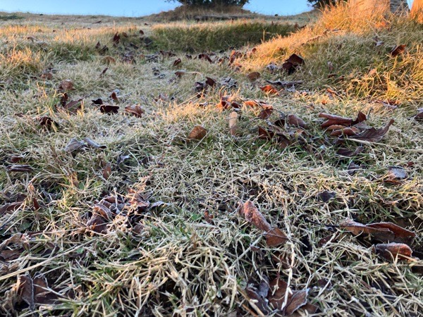 霜までいってませんでしたが、芝生が凍ってる感じ💦