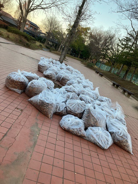 お散歩コースの落ち葉が集められておりましたが、それにしても凄い量((((;゚Д゚)))))))