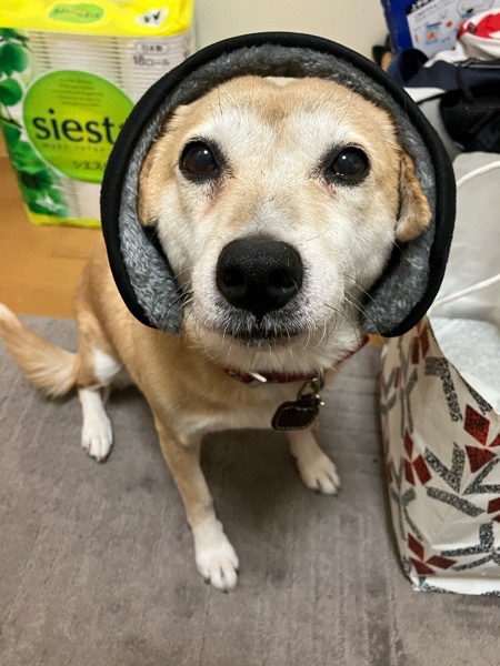 雷鳴った時に音を遮断出来ないかなーと、瞬ぴぃの耳当てを装着してみました😆