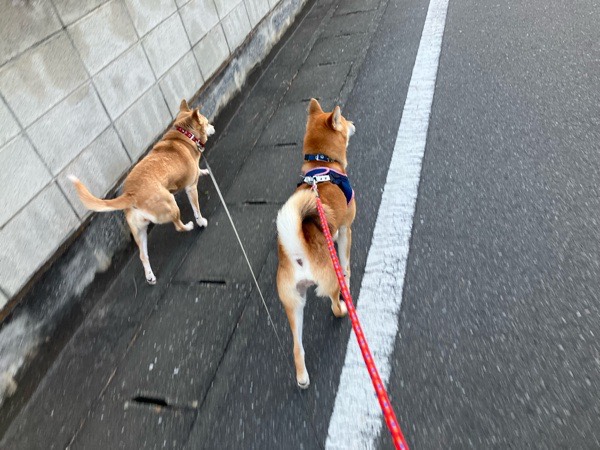 まだまだ行きたいリリ君と、早く部屋へ戻りたいヒバ子さん🐶