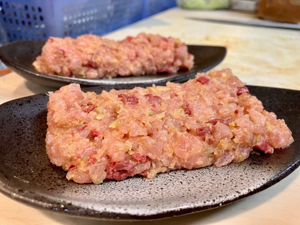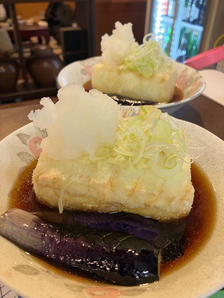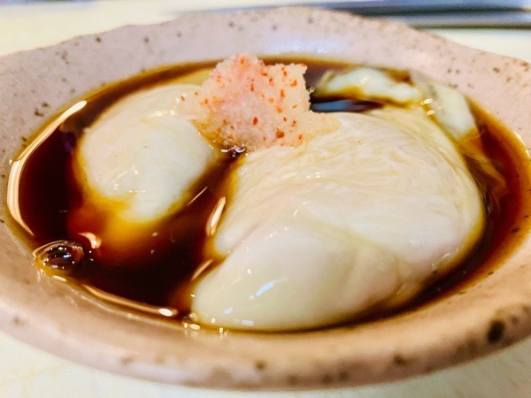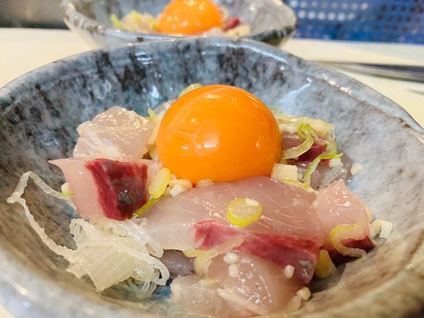 鰤の塩ユッケと山芋の短冊揚げが お通し。