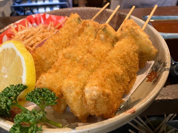 豚バラの串カツ。