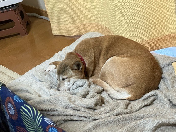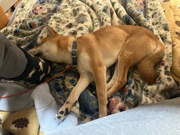 初日の出にテンション上がったからか、ちょっと お疲れ⁈で リリ君爆睡💤