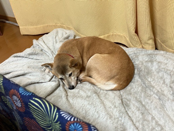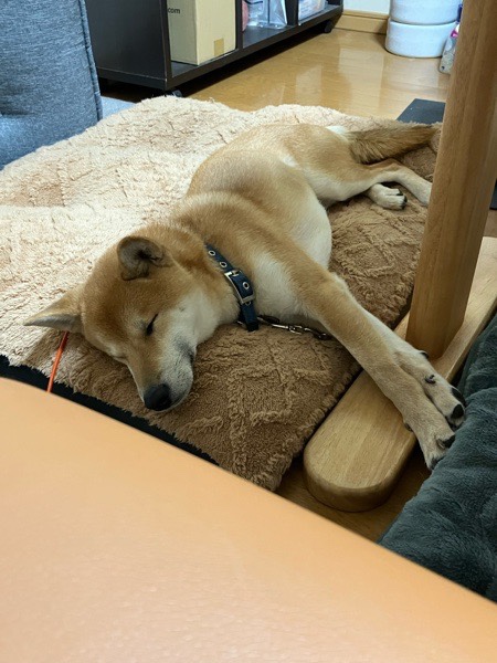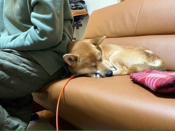 在宅ワークの奥様に くっ付くように 寝ておりました😂