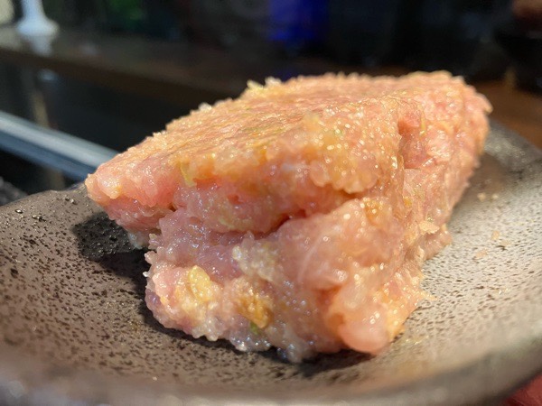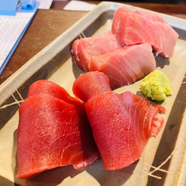 中トロ炙りと骨付き豚バラ煮が お通し。