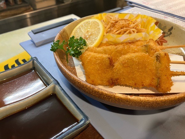 豚バラの串カツ。