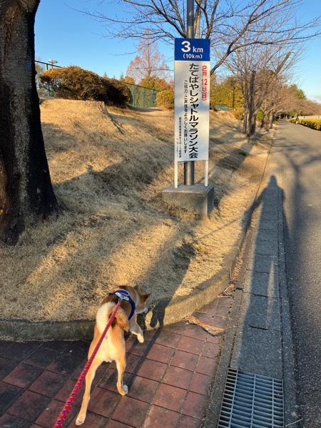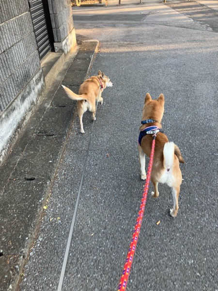 ボスが背中で引っ張っての 朝の お散歩🐕