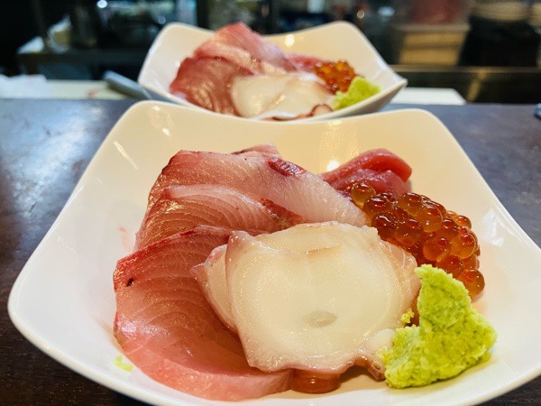 お刺身盛りのイクラ付き。