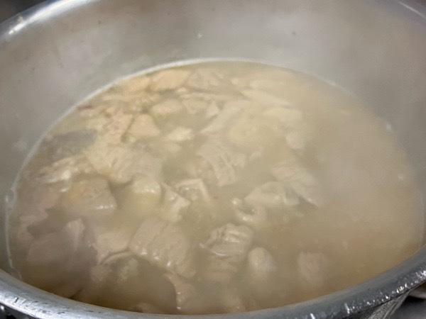 朝のうちに、お店へ行きまして もつ煮の火入れー。